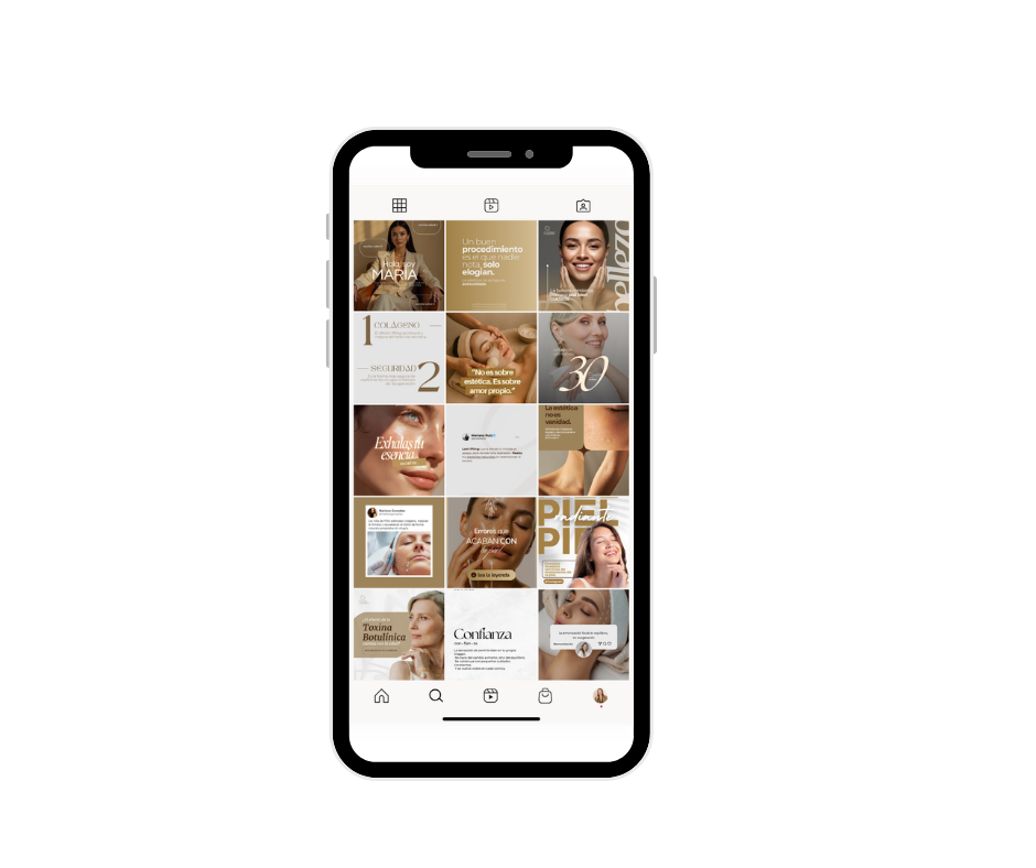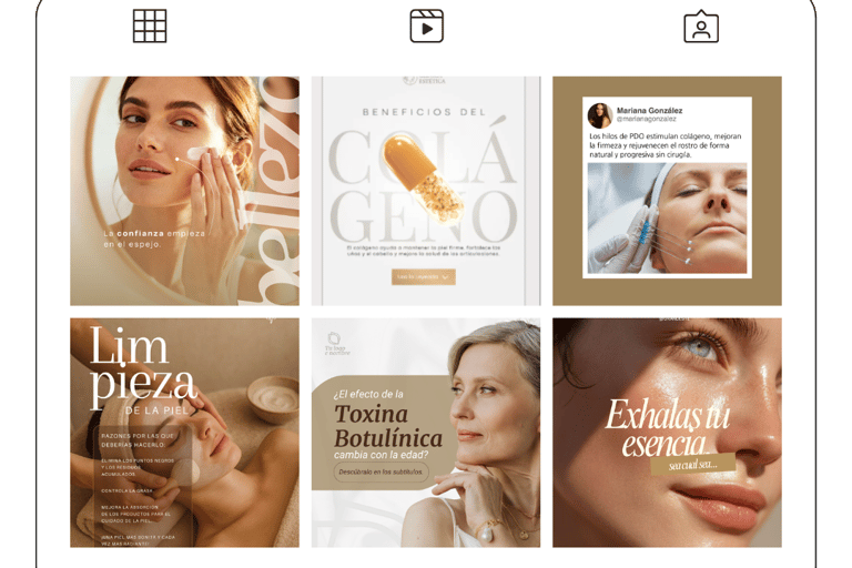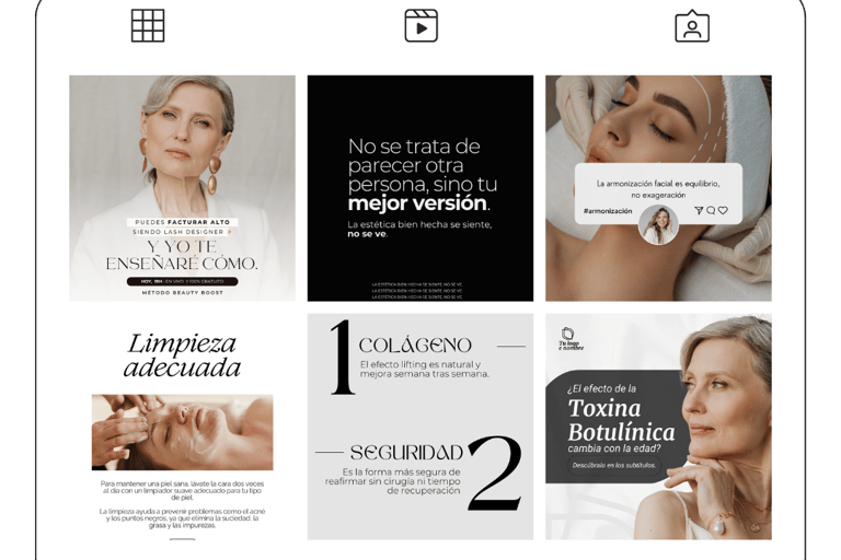 Un feed profesional, organizado, atractivo y diseñado estratégicamente, con contenido que atrae a la audiencia adecuada.